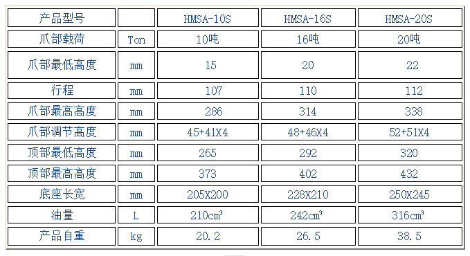 HMSA多段式可调爪式千斤顶优势介绍●爪部可多段调节,适用于不同高度重物的顶升作业;●泵与千斤顶分离,因此安全、灵活,适合远距离操作使用;●缸体360度旋转,滑块180度旋转,多方位操作使用范围广;●...